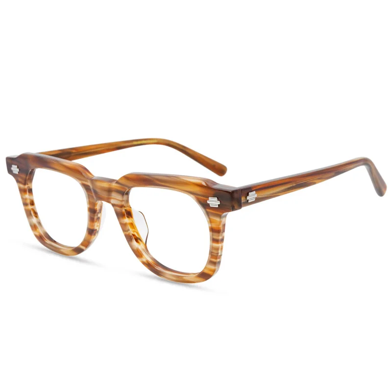 2024 Stripes Brown Square Eyeglasses Frames Men and Women Handmade Acetate Classical Glasses